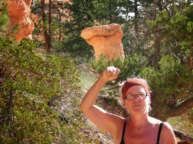 We hike along the rim back to where we have parked our truck at Sunset Point. From there we drive to Inspiration Point where you see the most breathtaking views. We hike again on the Rim Trail to Bryce Point travelling along the edge of the canyon. My fear is getting a little better. From there we must hop on to the shuttle to take us back to our truck. This has been the most amazing morning that I won't forget for a long, long time.